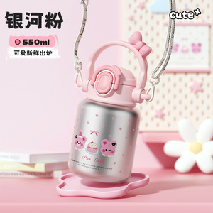 童话乐园保温杯 304不锈钢儿童上学用女卡通吸管杯保温保冷弹跳杯