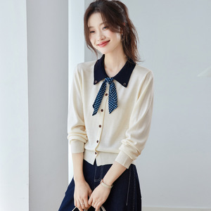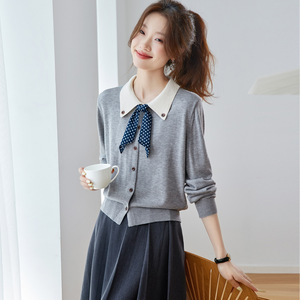 学院风2025年秋季新款针织衫上衣2025年女装娃娃领开衫漂亮上衣