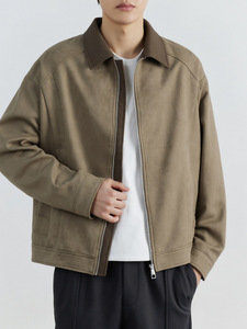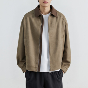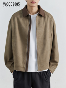 WOOG2005麂皮绒拼接男士翻领夹克2025春秋微宽松短款休闲茄克外套