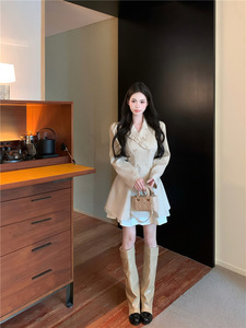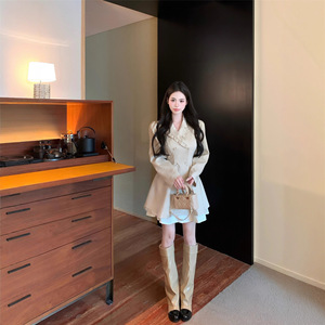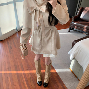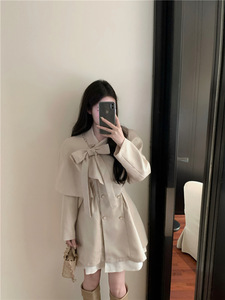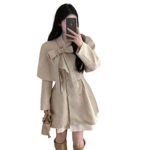 2025实拍小个子显高气质套装女风衣西装连衣裙富家千金斗篷外套