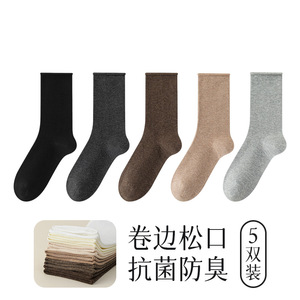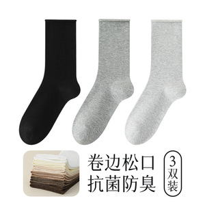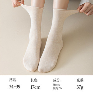 98%棉春秋新款全棉袜子女卷边松口不勒脚堆堆袜无骨吸汗防臭中筒