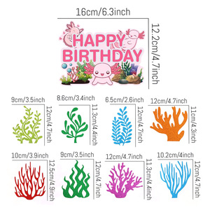 海洋主题蛋糕装饰插件生日快乐蛋糕插牌珊瑚水草装饰摆件套装插旗
