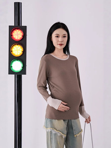 心天人可可打底衫春季孕妇肌底秋季圆领撞色拼接打底高弹加长护肚