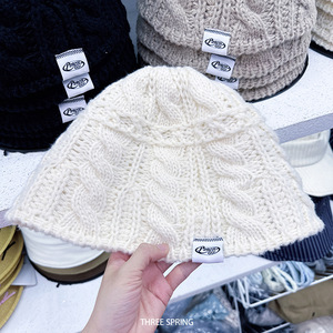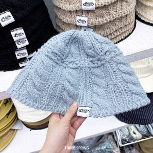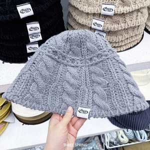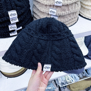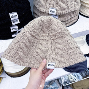 批发韩国2025年秋冬新款镂空麻花条纹渔夫帽女ins纯色简约针织帽