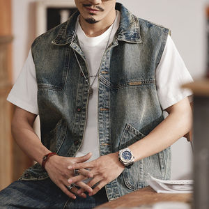 春春秋美式复古工装牛仔马甲男士外套坎肩背心潮流帅气休闲马夹潮