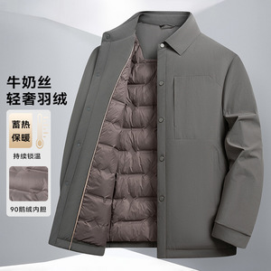 男式商务休闲鹅绒羽绒服冬季中年男士牛奶丝面料保暖鹅绒服鹅外套