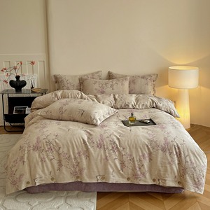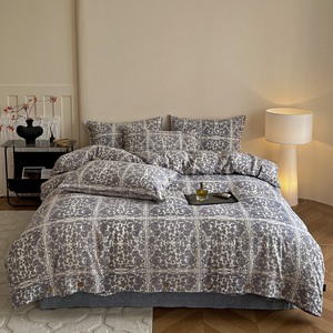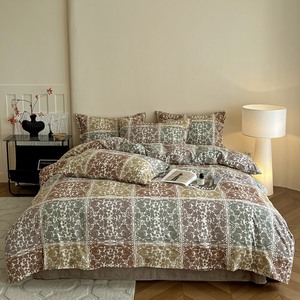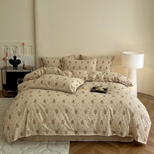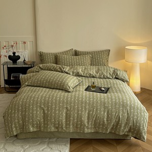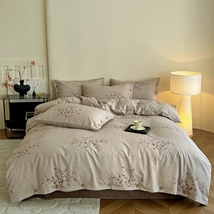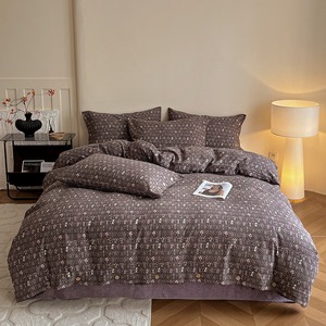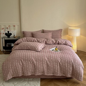 A类床上四件套亚麻纽扣款新款被套被罩床单学生宿舍磨毛三件套