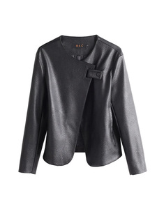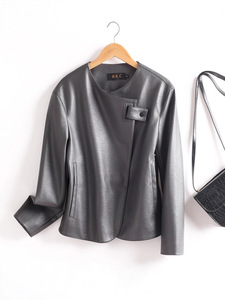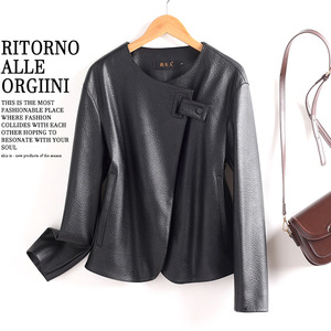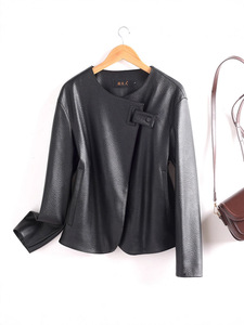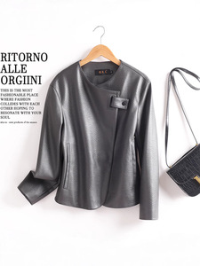 欧货高品质2025新款休闲皮衣女短夹克皮圆领皮外套