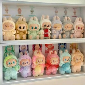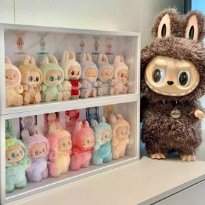 labubu展示盒拉布布搪胶一二三代实木收纳柜diy相框造景长条架子