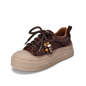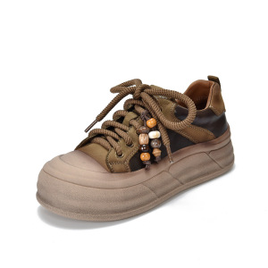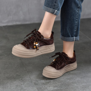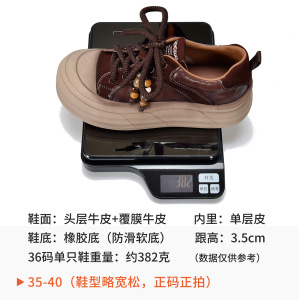 2025秋季新款手抓纹牛皮板鞋女复古休闲系带包头真皮女鞋平底单鞋