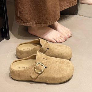 厚底勃肯半拖鞋女外穿2025秋冬内增高软底一脚蹬复古包头懒人拖鞋