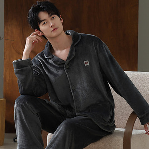 2025秋冬季男士睡衣法兰绒长袖长裤套装加肥加大宽松珊瑚绒家居服