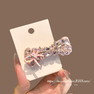 高级感水晶蝴蝶结发夹气质侧边夹子碎发刘海夹精致发卡鸭嘴夹发饰