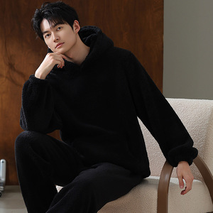 2025新珊瑚绒睡衣男秋冬季连帽保暖长袖套装大码休闲青少年家居服
