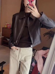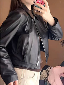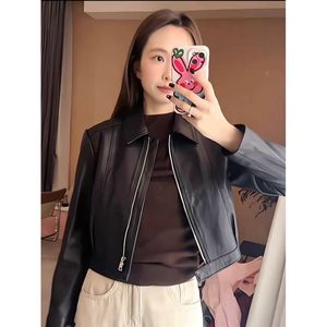 短款皮衣翻领外套春秋2025新款小个子高级机车皮夹克上衣时尚百搭