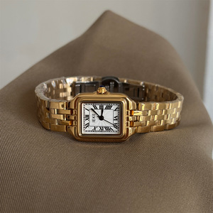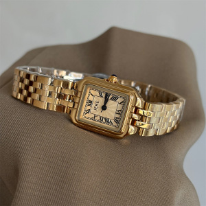 外贸跨境女表经典复古方形镶钻罗马情侣手表女款轻奢钢带石英腕表