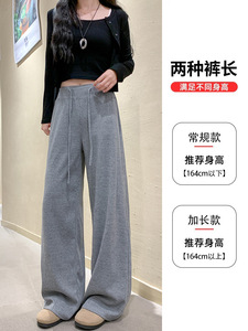 深灰色软糯阔腿裤女秋2025新款高腰休闲拖地慵懒风运动直筒糯米裤