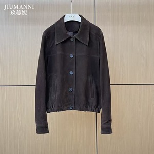 新款真皮皮衣进口山羊鹿茸皮超软翻领宽松大巴皮夹克外套26