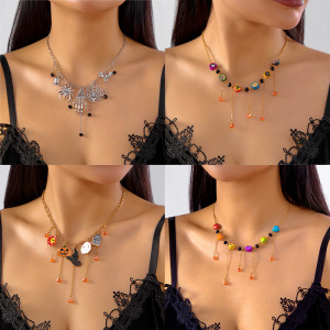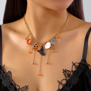 跨境欧美新款万圣节项链猫咪南瓜氛围感搞怪卡通吊坠节日饰品批发