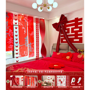 【主图款】喜字蝴蝶卧室窗帘装扮套装