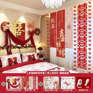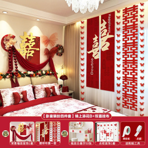 婚房氛围感布置结婚套装拉花装饰婚礼蝴蝶喜字女方新房卧室床头