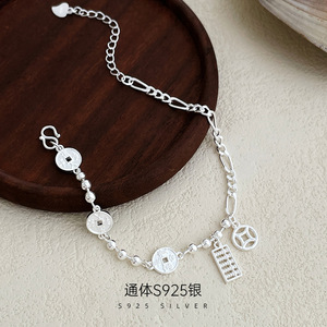 榕树下S925银新中式钱币算盘手链女2025爆款招财小众ins闺蜜手饰