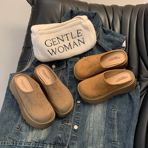 勃肯包头半拖鞋女外穿2025秋季新款厚底增高矮子乐懒人穆勒博肯鞋