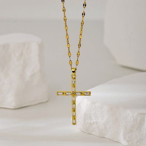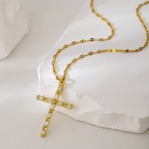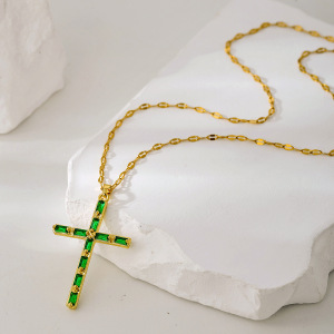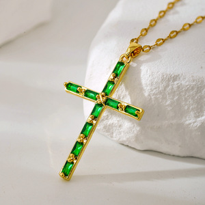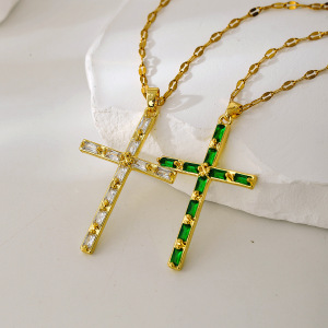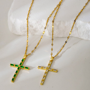 新款十字架项链女轻奢小众设计高级感时尚百搭彩色锆石吊坠锁骨链