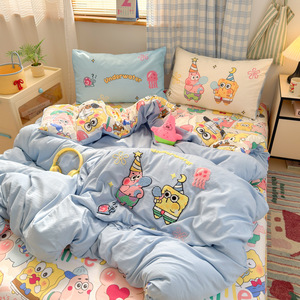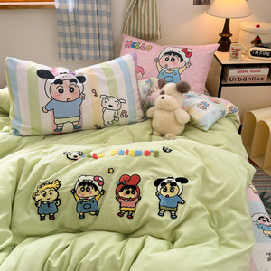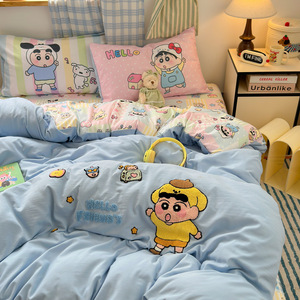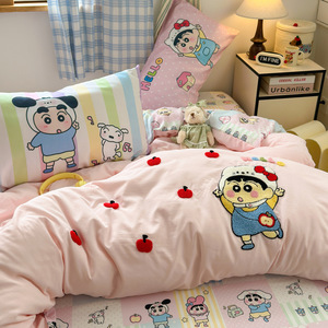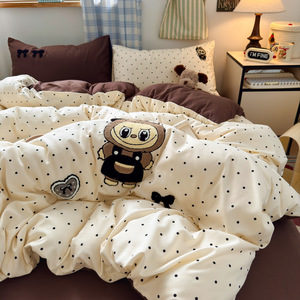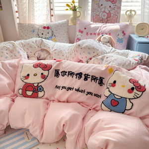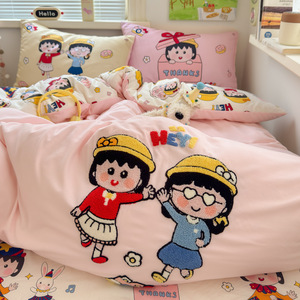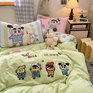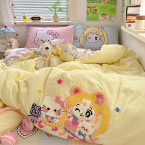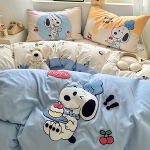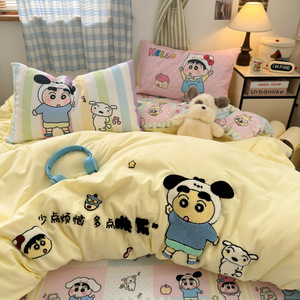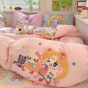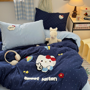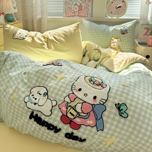 新款卡通高克重云朵棉毛巾绣小清新四件套学生宿舍三件套被套床单
