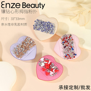 跨境热销贴钻心形拇指粉扑干湿两用亲肤定妆气垫迷你手指粉扑批发