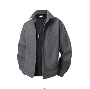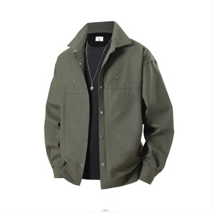 跨境男士春秋季翻领夹克休闲百搭宽松潮流时尚简约工装上衣男款秋