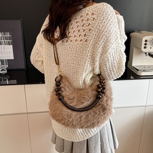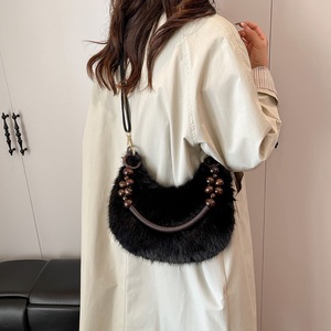 跨境新款毛毛手提包韩版女士搭配手工木珠单肩包简约斜挎包洋气