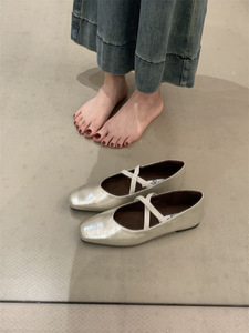 芭蕾风玛丽珍鞋女百搭平底配裙子浅口学院风单鞋一脚蹬奶奶鞋瓢鞋