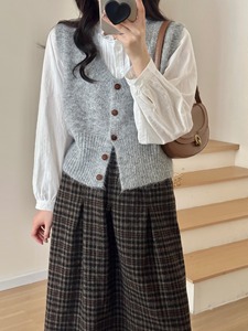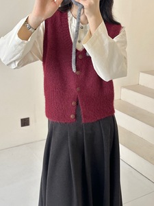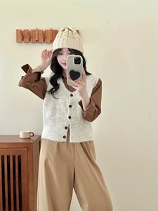 韩版复古纯色简约无袖毛衣马甲女春秋小个子宽松针织坎肩背心女装