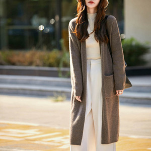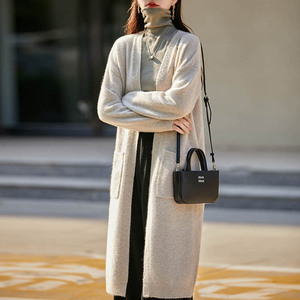 2025秋冬新款纯羊毛开衫女长款针织外套宽松显瘦纯色时尚气质大衣
