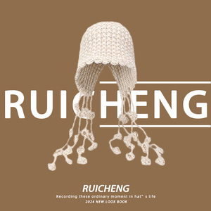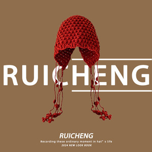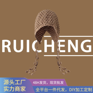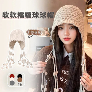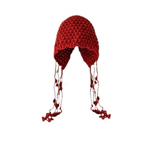旅游红色流苏球针织包头帽女显脸小出游草原镂空毛线套头帽子