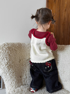 蔗梨童装女童秋装2025新款儿童洋气吊带上衣牛仔裤套装女宝宝衣服