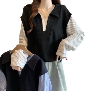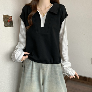胖MM2025新款秋装女装韩版设计条纹衬衫宽松百搭假两件上衣A6694