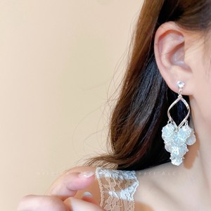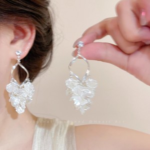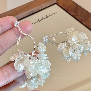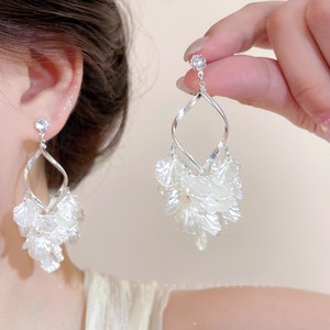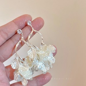 法式贝壳花瓣流苏耳环女款轻奢小众设计耳钉高级感无耳洞耳夹耳饰