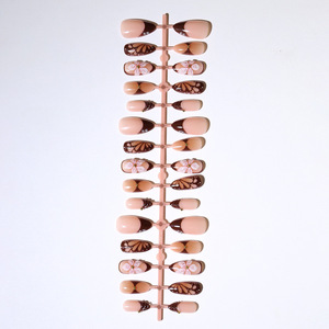 30pcs跨境杏仁穿戴甲简约风黑棕色法式边秋冬色系假指甲贴片点钻