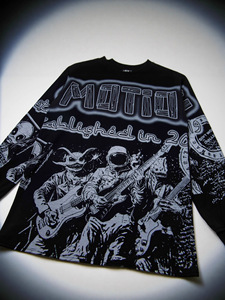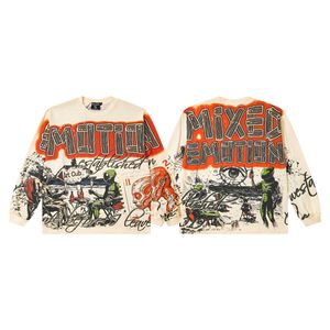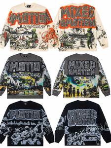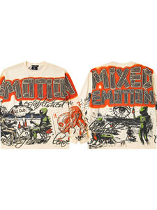 跨境美潮MIXED EMOTION新款美式街头嘻哈直喷满印纯棉长袖T恤