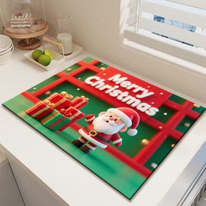 跨境圣诞快乐硅藻泥沥水垫厨房台面吸水防滑餐垫吧台茶几隔热垫