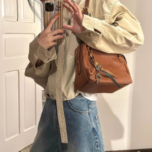 septwe美式复古 松弛轻便立领防风做旧花苞短风衣夹克2025秋季新