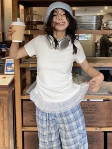 收腰短袖白色