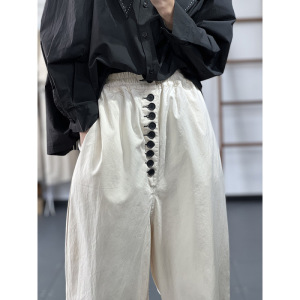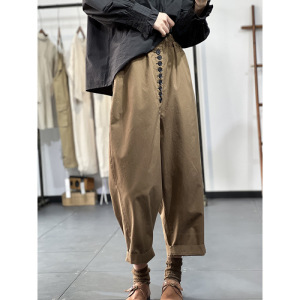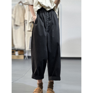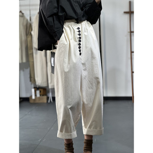 秋季原创文艺韩版一排扣宽松显瘦休闲百搭纯色棉质哈伦垮裤女
