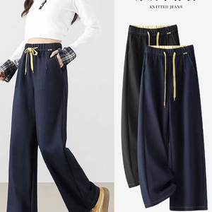 秋上新~窄版高腰抽绳款牛仔裤女2025新款休闲垂感直筒裤2507