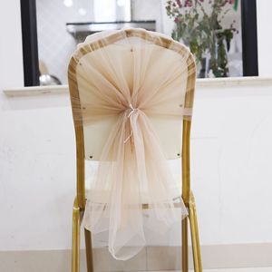 跨境椅背套飘带装饰椅子丝带美国网纱布置椅背花纱布宴会布幔纱幔
