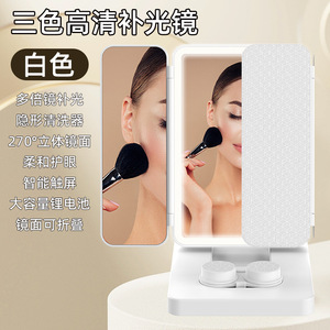 跨境镜子折叠led化妆镜 桌面伸缩旋转支架化妆镜带灯充电款梳妆镜