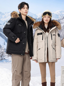 极寒户外滑雪羽绒服男女情侣中长款加厚保暖防寒服鹅绒外套派克服