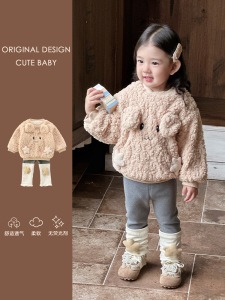 婴儿衣服秋冬季毛毛卫衣两件套外出服新生初冬超萌可爱女宝宝套装